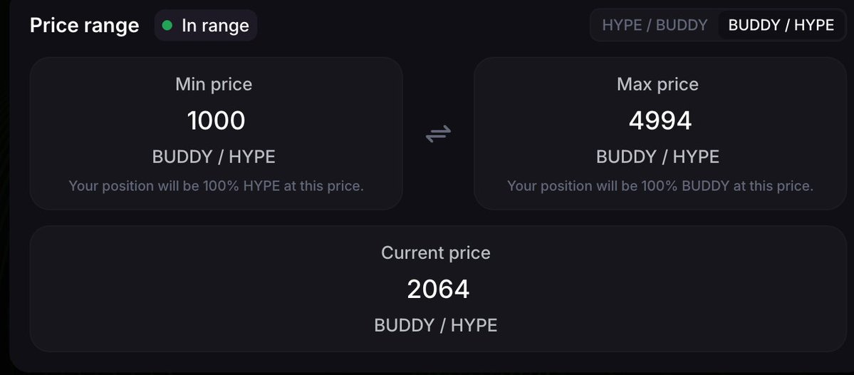 To briefly explain what an AMM DEX is: unlike orderbook-based exchanges, where buy and sell orders are directly matched, AMM DEXs conduct trades via liquidity pools. These pools typically follow the constant product model x*y=k and are composed of two assets (e.g., BUDDY/HYPE).