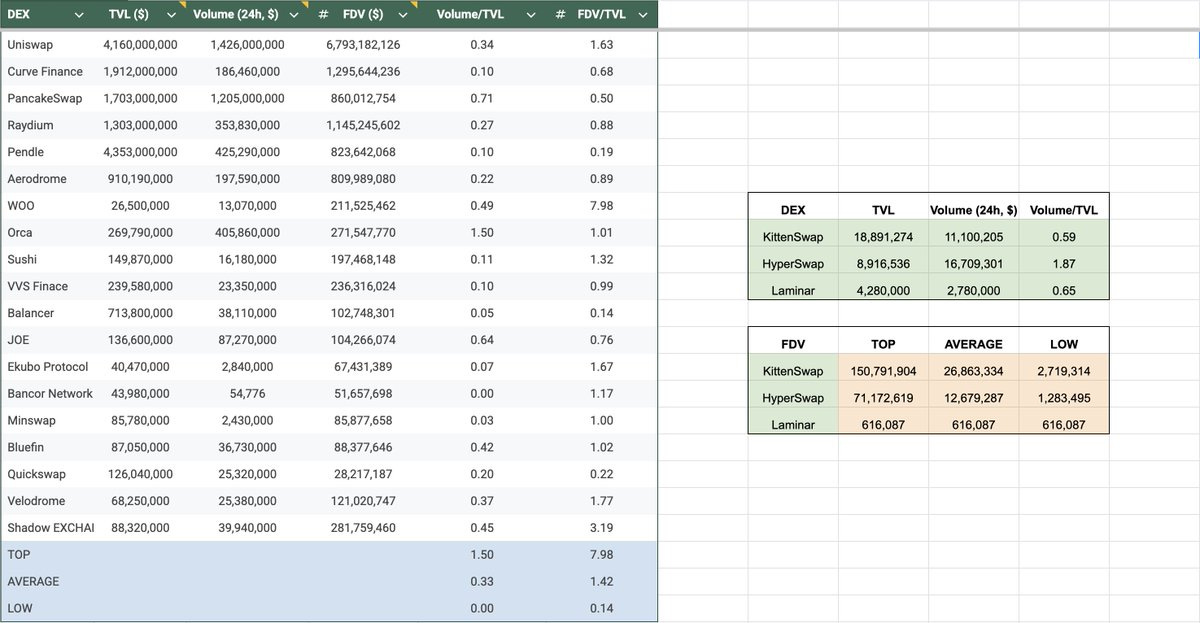 This document is research material based on information about AMM DEX projects (HyperSwap, KittenSwap, Laminar) within the Hyperliquid and HyperEVM ecosystem. It is not intended as investment advice. All figures are based on public data and are subject to change. Readers are responsible for their own interpretation and decisions.